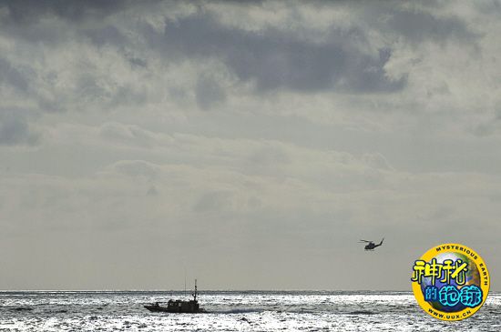 搜救人员乘坐直升机展开搜救,不久发现了海里的罗西。电视画面显示,罗西扔掉了飞行翼,不停地踩水以确保自己浮在水面。