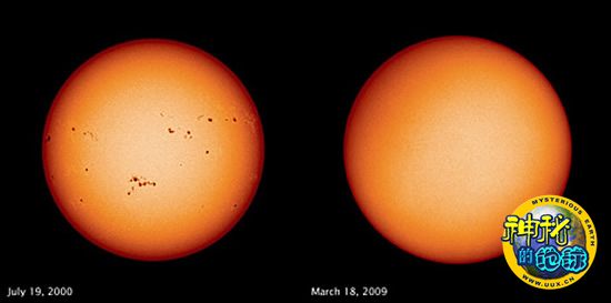 众所周知,太阳黑子活动周期约为11年。在当前这个周期内,2008年太阳黑子活动仍处于低谷,到2009年本应该开始活跃起来。但是,科学家们发现,在2009年前90天内有78天太阳黑子活动都很少见,而且这段时间太阳也处于近百年来最暗淡的状态。科学家们由此认为,太阳如果继续平静下去,将有可能进入和当年小冰期时相似的状态,那么欧洲、美国和西伯利亚等地区就有可能会骤然变冷,进入不寻常的小冰期。不过,美国亚历桑那州罗威尔天文台天文学家杰弗里-豪尔也指出,这种小冰期可能不会影响全球所有地区。