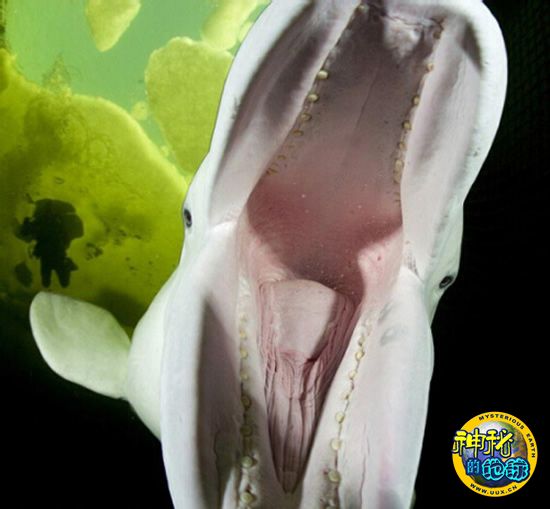 白鲸张大口,似乎要吞下这个不知为何物的摄像机。