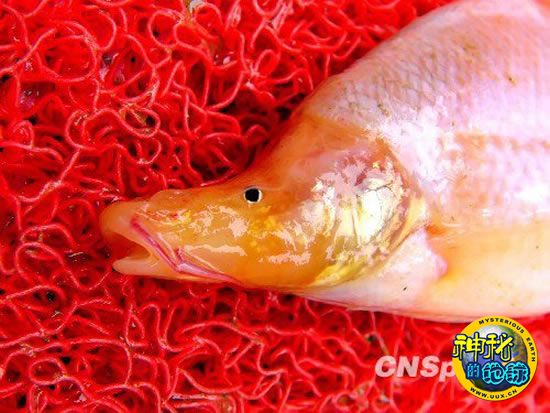 2010年2月7日,在世界长寿之乡--广西巴马大洛村的一个山洞里,一渔民网到了几条“怪鱼”。鱼嘴扁平象鸭嘴,呈细长型,有须,嘴唇像涂了口红,眼睛靠近鱼嘴,很小,身体扁平。