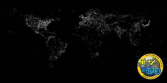 地球上最明亮的区域也是城市最密集的区域,但并不代表是人口最多的地区。本图显示,全球城市趋向沿着海岸线和交通网络增长。即使在电灯发明100多年后,地球上的一些区域仍然是人烟稀少,暗淡无光。南极地区仍然是完全处于黑暗之中,非洲和南美洲内陆丛林地区,也几乎是一片黑暗。在非洲、阿拉伯半岛、澳大利亚、蒙古以及美国等地的沙漠之中,也几乎看不到灯光(除了海岸线附近地区)。加拿大和俄罗斯的北方针叶林带以及喜马拉雅山脉地区,同样也是如此。这张城市灯光图是根据美国国防气象卫星计划业务线性扫描系统的数据绘制而成。