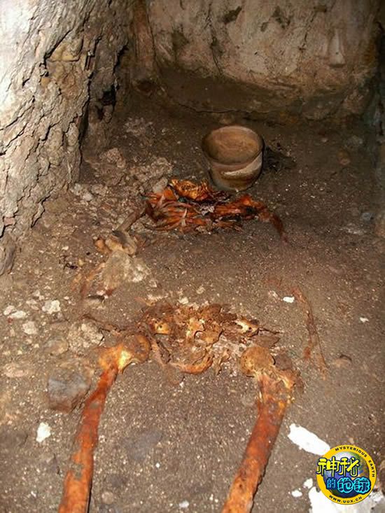 坟墓中的这具无头男尸困扰着考古学家,男尸的头颅去向成为未解之谜。据加拉加介绍,这座坟墓非常简陋,大小只够容纳一具尸体,而且上面仅仅覆盖了一块平滑的白色石膏板。通过对尸体残骸的初步分析,结果表明他应该是一位35到42岁的男子,而且患有某种关节炎,但他的头颅已经不见了。加拉加认为,这位受害者可能是被斩首的。斩首在古代玛雅战争中是非常常见的做法。