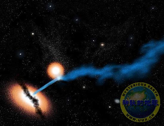 美国宇航局、美国国家射电天文台和英国曼彻斯特大学利用地面光学射电望远镜哈勃太空望远镜、“钱德拉”X射线太空望远镜和红外线斯皮策太空望远镜,获得了这次爆发的不同波长的图像,其中包括不可见光。他们的研究结果将于明年发表在《天体物理学》杂志上。这两个星系相距仅24000光年,现在正处于缓慢的合并过程。这些喷射物已经跑了100万光年了。一光年大约是5.88万亿英里。泰森表示,从望远镜的发现我们能吸取两个重要教训,“第一,这暗示出你在宇宙中并不是独一无二的,并不是孤立的。你所处的环境并不是一个安全岛。第二,你要尽一切努力避开黑洞。”