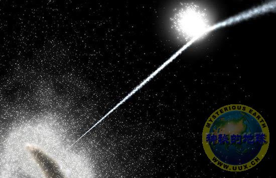 这个星系有一个用多位数字为代码的名字,但是其中一个发现这种银河恃强凌弱行为的研究员、哈佛-史密斯索尼安天体物理中心的丹尼尔·埃文斯将它称作“死亡恒星系”。英国赫特福德大学的马丁·哈德斯特是这篇研究论文的联合作者,他表示,数千万颗恒星和大量围绕它们运行的行星,都有可能在这种致命的放射物的喷射范围内。埃文斯表示,如果地球处在这个范围内(事实上它不在这个范围内),死亡恒星系喷出的高能粒子和放射物大概只要用几个月的时间,就能破坏掉地球的臭氧保护层,并缩小具有保护作用的磁气圈。这样,太阳和喷射物就能用高能粒子对地球进行狂轰滥炸。这种情况会对地球上的生命产生什么影响呢?泰森说:“会分解掉它们。”埃文斯说:“地球会成为不毛之地。”
