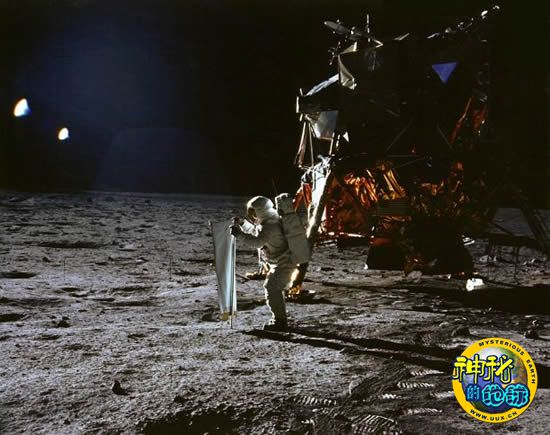 美国“阿波罗11号”登月任务中插在月球表面的那面美国国旗,一直是“月球阴谋论”中饱受质疑的主角,阴谋论者质疑称,月球上没有空气,可宇航员插在月球表面的美国国旗却能迎风飘扬,这一漏洞显示宇航员仍然身处地球。
