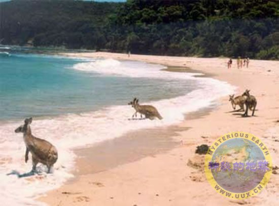 资料图:在海边嬉戏的袋鼠