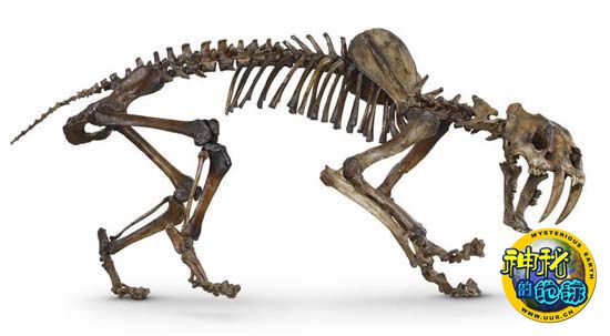 剑齿猫可不是什么可爱的猫咪,而是长有像刀一般锋利的巨大犬牙,凶猛异常。在更新世晚期,剑齿猫广泛分布在如今的北美洲和欧洲大陆上。在加州一处化石遗址,发现了数千块剑齿猫骨骼化石。加州大学古生物学博物馆专家推测,凶猛的剑齿猫很可能是用其巨大的嚼牙“撕裂猎物的腹部或喉部,发动致命攻击”。