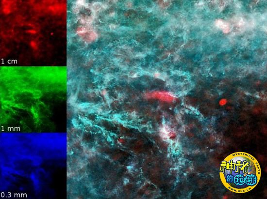 英仙座附近少量恒星形成的区域系列图片,描述了星际尘埃的结构和分布是如何从普朗特获得的图片中分离出来的