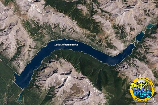 据美国宇航局官网报道,米尼万卡湖位于加拿大班夫国家公园的最东端,这个奇特的Z字形湖泊形成于班夫市东北方的弓形山谷之中。美国宇航局近日公布的一幅关于米尼万卡湖的卫星图片表明,弓形山谷形成于冰川作用。