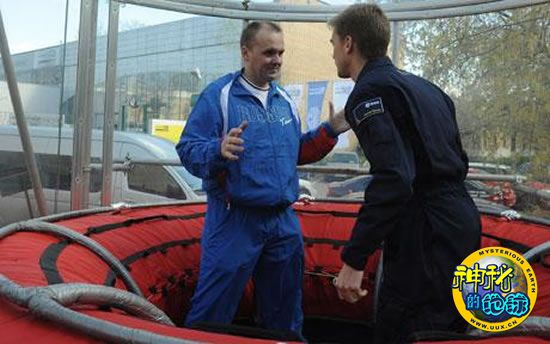 志愿者在一个垂直风洞里训练