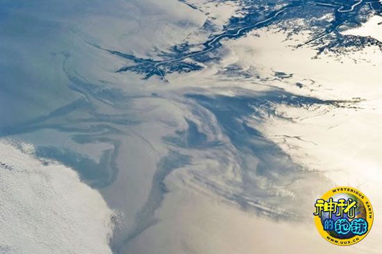 根据最新公布的日本宇航员野口宗千从太空拍到的一张照片,泄漏的原油在距路易斯安那州海岸不远的墨西哥湾旋转,就像倒进咖啡的乳脂一样。在左下角,低云盘旋于墨西哥湾上空。美宇航局和其他太空机构的卫星一直在从太空追踪墨西哥湾泄漏原油的动向,野口宗千从国际空间站拍摄的这张照片提供了有关漏油状况的不同视角。照片是从侧面拍摄的,捕捉到细微的黑色原油带在阳光反射下,与浅色调的海水形成了鲜明对比。相比之下,卫星照片通常是以直线的视角拍摄的。