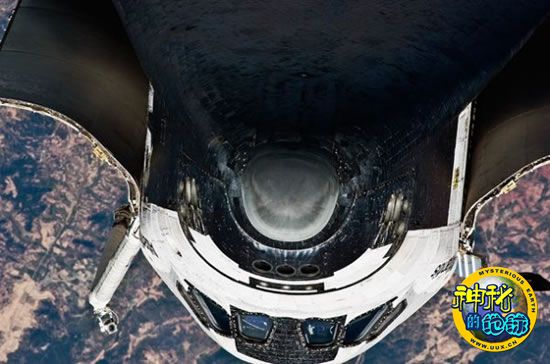 如图,国际空间站的宇航员捕捉到的这张照片,显示了16日亚特兰蒂斯号航天飞机正在进行“直体后空翻”。这一杂技动作使国际空间站宇航员有机会在亚特兰蒂斯号航天飞机同空间站对接前对其进行损伤检测。