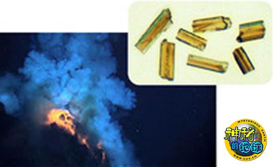 微小的锆石结晶(小图)表明远古火山爆发曾温暖了这个世界。(图片提供:NOAA;Henrik Svensen)