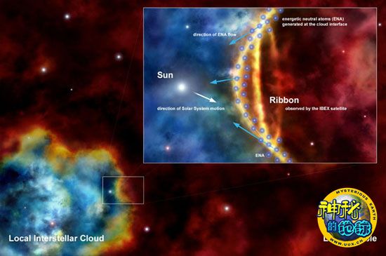 此外,天文学家还发现了一个秘密:在太阳系的边缘出现了一个由带电粒子组成的带状结构物。这个发现让人很震惊,同时通过“旅行者”和“星际边界探索者”探测器对带状物的数据研究,这次发现最后成为新理论的依据。科学家认为太阳正在朝古老的超新星残骸移动的事实,就是带状物存在原因的最好解释。太阳和超新星残骸的相互作用还可以解释出太阳系边缘发生不对称的原因。