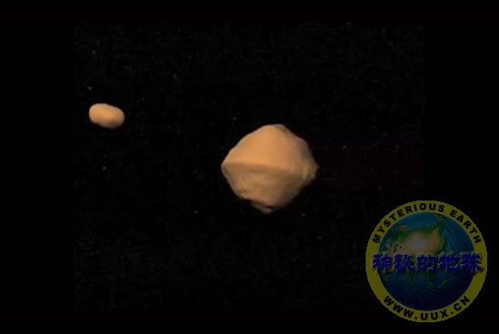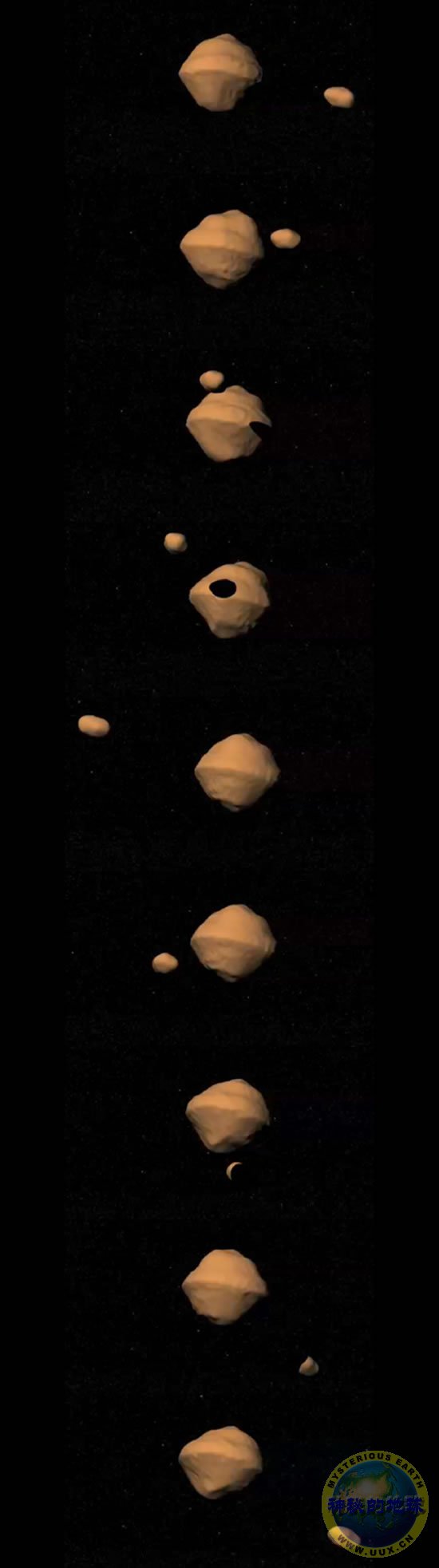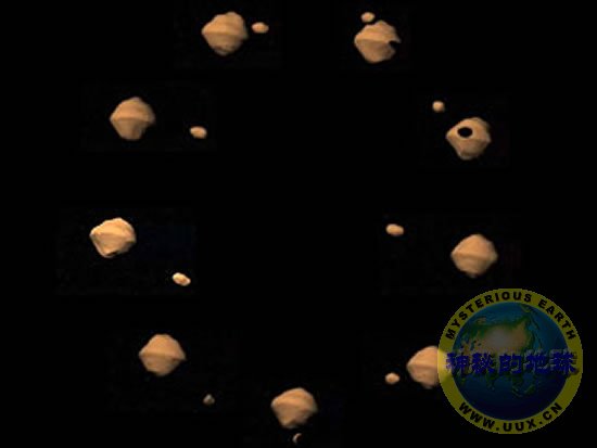 具有两个部分的近地小行星1999 KW4也许在一次靠近太阳或地球飞行的激发下,正在快速地自旋。在现已发现的840个大的近地小行星中,28个是双体系统。双体系统通常在太空中比较常见,比如双星系统和行星-卫星系统。离我们近的小行星为了解双体系统的行为提供了一个机会。当最大的近地双体小行星1999 KW4于2001年5月从我们的地球旁边飞过时,研究人员通过将雷达发射到它们的表面,测量返回信号的强度和延迟,测绘了它的两个部分。Steven Ostro和同事现在展示了这些测绘努力的结果。小行星的主要部分Alpha由非坚固的碎石组成,而且以每2.8小时一周的速度沿自身的轴自转。该部分的小伴侣Beta比Alpha的形状长而且密度大。在另一篇报告中,Daniel Scheeres和同事模拟了该系统的轨道和旋转动力学。Alpha自旋的速度接近它的离散速度。文章作者提出,这个双体小行星也许来自一个碎石堆的前体小行星,在其一次靠近太阳或地球的飞行后被导致进入自旋状态。1999 KW4的轨道与地球的轨道相交,所以了解该小行星的快速自旋运动对可能的碰撞也许是重要的。