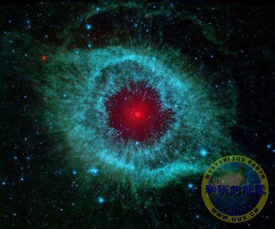 在我们的银河系中,类似的星云还有很多,但螺旋星云却是迄今为止已知的少数几个能够证明“宇宙幸存者”存在的星云。美国宇航局的科学家指出,位于中心的濒死恒星周围的红色薄雾状物质最有可能是与彗星相撞时产生的尘埃导致的。在这颗恒星“去世”前,该系统外部空间的彗星会井井有条地绕轨道运行。但随着这颗濒死恒星的不断膨胀,它会将这些彗星“吹”出各自的轨道,现在的它们彼此拥挤,喷射的尘埃绕着这颗白矮星盘旋。