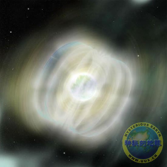 这同样是一名画家的杰作,图片的主角是一种罕见的天体——磁星,由于x射线爆炸,它正在闪闪发光。这颗位于人马座的罕见磁星距地球大约1.5万光年,它是一颗快速旋转的小中子星,会定期上演壮观的x射线喷射。