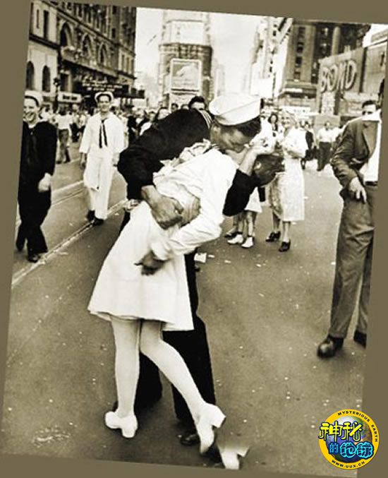 1945年美国时间8月14日,日本宣布无条件投降。一名美国水兵在纽约时报广场的欢庆胜利时拥吻了身旁的一位女护士,这一瞬间被美国《生活》杂志的摄影师抓拍下来。这张“胜利日之吻”的照片也因此成为美国人庆祝第二次世界大战胜利的经典镜头。
