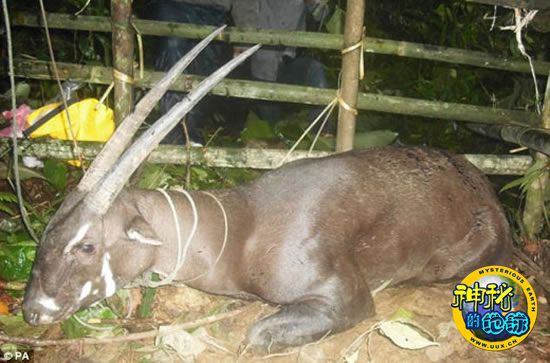 据英国每日邮报报道,近期,老挝村民捕捉到一只成年雄性“亚洲麒麟”,这是一种极为罕见的哺乳动物,其学名为“武广牛(saola)”。