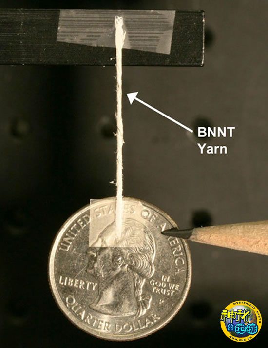 第一根肉眼可见的、用于商业的BNNTs——它被纺成了3厘米长、直径1毫米的纤维线。