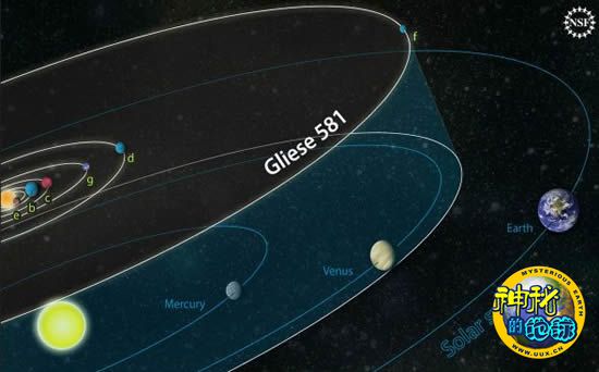 格利泽581位于天秤座,距地球20光年远,以前天文学家层在其周围发现了两颗行星,它们处于“宜居带”的边缘,被分别命名为格利泽581c和格利泽581d。一些天文学家认为,如果格利泽581d具有稠密的大气层,强大的温室效应令其不断升温,那么这颗行星可能适于生命存在,但也有天文学家对这种说法提出质疑。