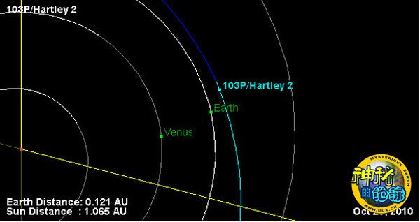 “哈特雷2号”彗星(103P/Hartley 2)目前正在逐渐靠近地球,10月20日时它与地球的距离将不超过1100万英里(约合1770万公里)。