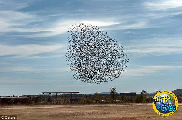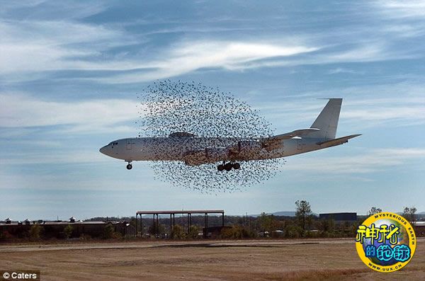 一架军用飞机在即将降落前忽然被一群鸟类瞬间席卷吞没,当时的情形看起来就像阿尔弗雷德•希区柯克的小说《群鸟》的场景一样。据称,这架美国海军飞机在临近阿肯色州史密斯堡地区机场的跑道时忽然惨遭鸟群突袭,不过这家飞机竟然奇迹般的毫无损伤幸免于难,更幸运的是,这架耗资8800万英镑的飞机E-6B的驾驶员面对鸟群围攻面无惧色,最终镇定自若的将飞机安全降落。