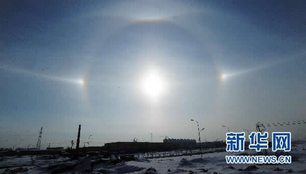“快看,天空中出现了三个太阳!”长春市民薄凯文8日午后休息时忽然抬头望了望天空,立即作此感叹,并奔走相告。当日,许多长春市民都目睹了这一罕见的自然奇观。记者经过咨询得知,该现象为“幻日”。