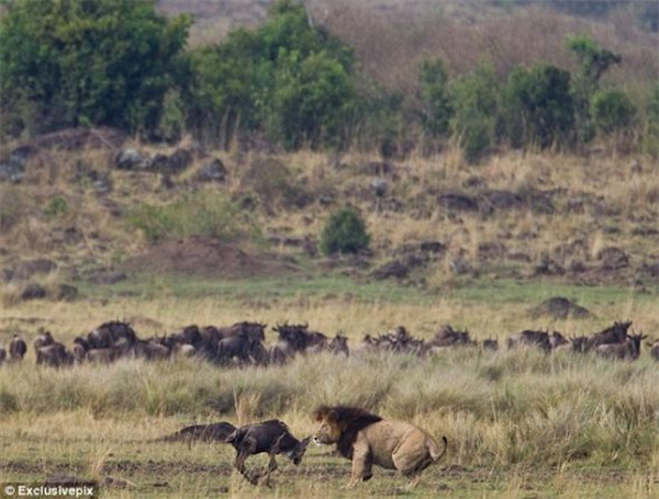 角马准备再次还击时,那只雌狮改变了主意,决定放弃攻击