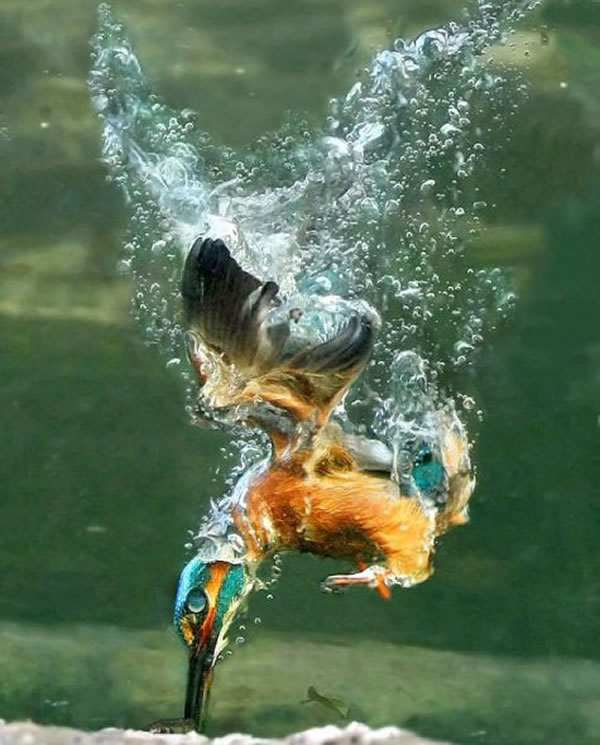 翠鸟入水捕鱼瞬间