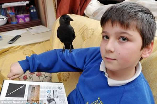 英国一位小学生与寒鸦成好朋友
