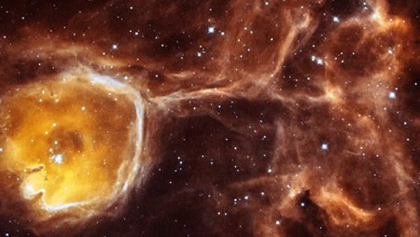 科学家利用美国哈勃太空望远镜和斯皮策太空望远镜发现了一个遥远的星系,仪器测定它与地球的距离为128亿光年。