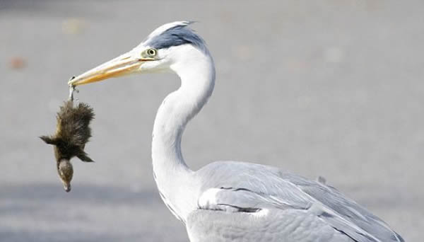 这些令人难以置信的照片捕捉到一只苍鹭在非常无助的鸭妈妈的注视下,一连吃掉两只刚刚出生的小鸭子的画面。