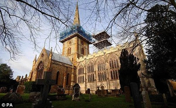 莎士比亚的遗体被埋葬在他故乡的一个教区教堂里,即埃文河畔斯特拉特福德的圣三一教堂
