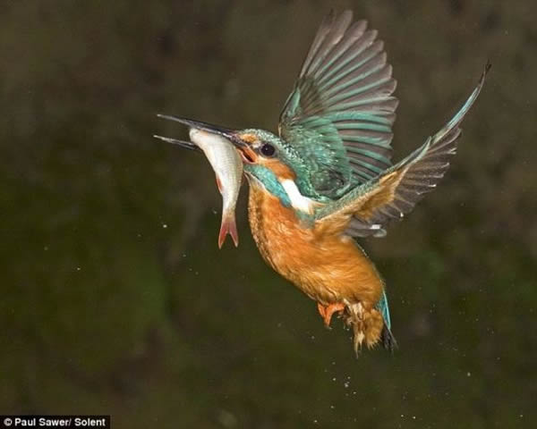 翠鸟捕鱼时飞行速度之快往往令人以难置信,在其头部潜入水中的瞬间甚至都不会在水面上产生明显波纹。对于如此惊人的瞬间,摄影师常常也很难捕捉到清晰的细节画面。近期,英国摄影师保罗-萨沃尔在萨福克郡埃尔德河边守候五个星期,终于拍摄到一个翠鸟家庭入水捕鱼时精彩瞬间的清晰画面。