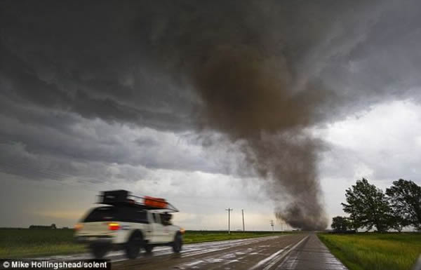 他说:“通常情况下我在拍照时会很安静,但是在面对大自然呈现出的如此宏伟壮观的奇景时,我有时会控制不住自己。偶尔我会情不自禁地惊叹:‘喔,天哪!简直令人难以置信!’我见过一些非常棒的风暴,但是这晚的超级单体是风暴中的极品。它如此超凡脱俗,是过去13年间我见过的最为宏伟壮观的风暴。今年的风暴和龙卷风令人感觉有些无趣,虽然美国发生多次致命龙卷风,但是由于它们都太危险,暴风猎人根本无法追踪它们。” 第二天霍林谢德也拍摄到一些令人惊叹的龙卷风画面。