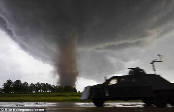 他说:“道路会令你陷入困境,决心、时间选择等很多因素都会妨碍你看到这种壮美景观,因此对我来说,为了看到这些,经过两天的奔波也是值得的。我以前从未距离龙卷风这么近,也从未捕捉到如此清晰的照片。有段时间它正好位于我头顶上空,然后很快移走,并导致一辆火车脱轨。当你位于龙卷风的行进途中时,你有时会被吓得浑身发抖,我不得不把相机固定在汽车上,以防拍照时相机晃动。迅速旋转的旋风从地面向上延伸,一直进入云端,几乎就位于你头顶上,面对这些,你很难不产生忧虑感。”