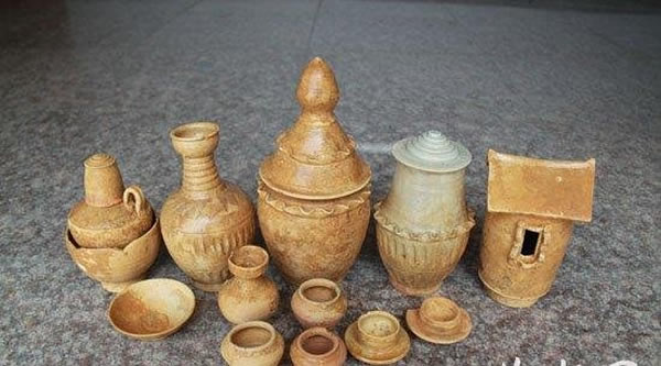 出土的瓷器中有珍贵的魂瓶,又称谷仓罐