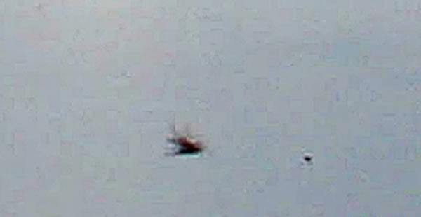 拍到的照片原图(中间黑点为疑似长白山天池“怪兽”)