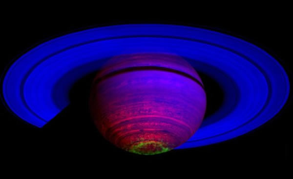 哈佛史密森天体物理中心最新研究成果显示:有些距离其恒星较近的气态系外行星上由于恒星高能粒子流的作用,将出现全球性的极光现象。如果地球上的极光现象是令人印象极为深刻的,那么就应该想象一下那些位于太阳系以外的行星上(例如轨道距离其恒星较近的大质量气态行星)产生的极光是何种情形。而由美国国家航空航天局的卡西尼飞船红外光谱成像仪拍摄的合成图像显示,土星南极地区云层顶部的出现极为绚丽的极光情景。