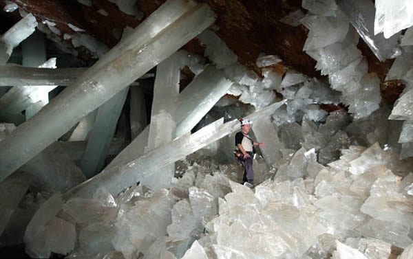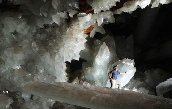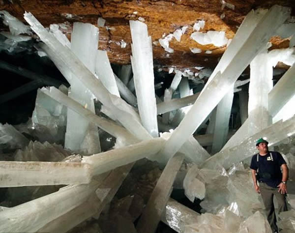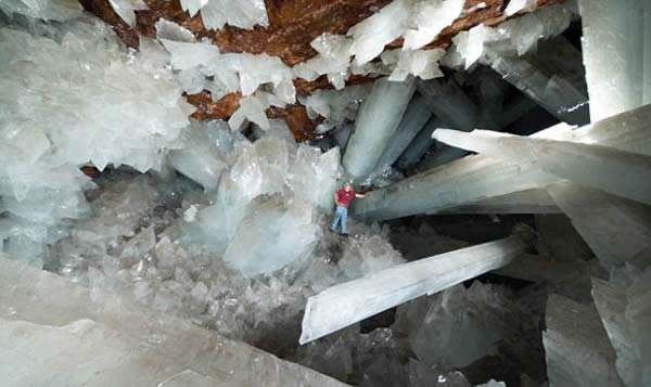 两名墨西哥矿工在搜寻铅矿时发现巨大的水晶洞,置身其中,你放佛来到超人的北极秘密基地。这些水晶洞位于墨西哥奈卡地下,洞内的白色石膏晶体在数十万年内一直以蜗牛般爬行的速度生长。