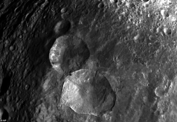 灶神星“雪人”奇特地形:一排三个陨石坑