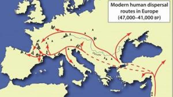 这些新的行为模式最早可追溯到20-3万年非洲的现代人祖先,他们在6万年前开始一步步进驻欧亚大陆。一种理论认为,尼安德特人和现代人已经分别独立进化了至少50万年,而且该理论已在最近被遗传学研究证实了。那么,二者的思考能力有显著区别,也在意料之中。