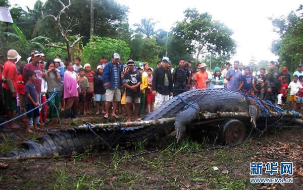 上个月,当地居民曾目睹有巨型鳄鱼攻击水牛,并且7月份失踪的一名渔民据信也与巨型鳄鱼有关。这引起当地有关部门的高度重视。因此,经过3个星期的追捕,当地居民和有经验的猎人最终在布纳万镇的一条溪流里联手活捉了一条巨型鳄鱼。