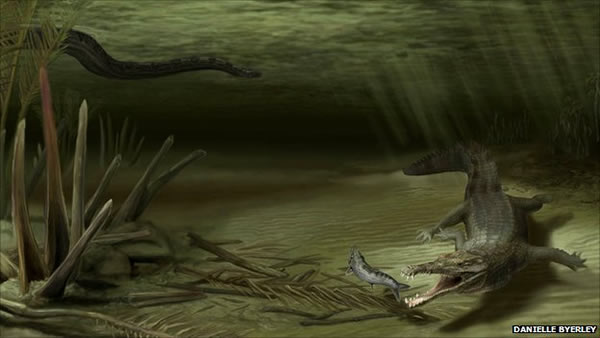 科学家在报告中指出,这种远古鳄鱼生活在距今约6000万年前古新世时期的热带雨林中。古新世时期是两栖类爬行动物的天地,当时主要的物种就是鳄鱼、巨蛇与乌龟。据悉,这种远古鳄鱼与一种名为泰坦蟒(Titanoboa)的巨型蛇类属于同时期的生物。美国佛罗里达州自然博物馆的亚历克斯·黑斯廷斯介绍,泰坦蟒体长最长可达13米,是人类已知的体型最大的一种蛇,它跟巨鳄势均力敌,都以鱼类为食,所以应该说是十分强劲的食物竞争对手。