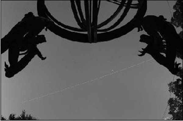 昨晚7时天宫一号从北京古观象台上空过境 图为 91幅1秒照片叠加而成摄/朱进