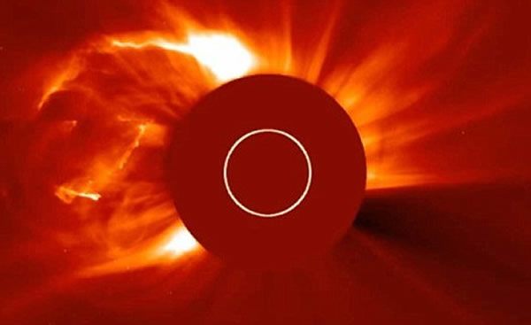 科学家们正密切监视这一团带电粒子云,它们将于数日内抵达地球附近,因为它们将有可能扰乱地球上的长距离无线电通讯。
