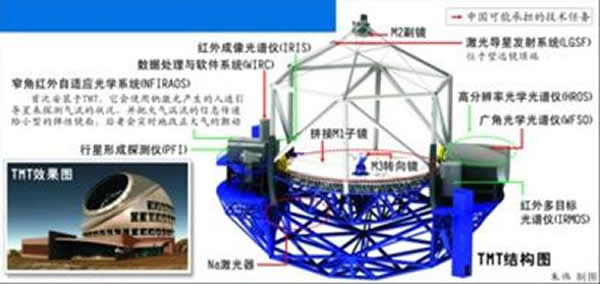 迄今,日本、中国、印度已先后参与该项目。其中,中国科学院国家天文台联合国内相关研究单位于2009年获得TMT项目的 “观察员”资格。去年5月,TMT的一块1:1子镜和两块1米级镜胚已运至南京天文光学技术研究所,开始镜片试磨制工作。
