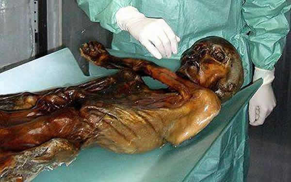 20年前,一对德国夫妇徒步旅行时在奥地利和意大利边境的阿尔卑斯山冰川中发现了这具冰尸。研究发现,这具冰尸有5300多年的历史,是现存世界上最古老的木乃伊,他被命名为“冰人奥兹”。“冰人奥兹”身高5英尺5英寸(约1.65米),死时约有46岁。科学家在他的身上发现了箭伤,据此推测他是死于一次阴险的谋杀:先是在狩猎途中遭伏击中箭,随后头部遭棒击致死。