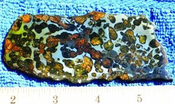 2006年,美国密苏里州的一名农夫在山坡上挖出一块外观普通的陨石,切开一角后发现,里面竟然散落着一颗颗美丽的绝色橄榄石。
